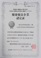 当協会は、令和7年9月2日付で健康優良企業「銀の認定」を取得しました。本認定は、健康経営・健康づくりの取組みを積極的に行うことを宣言する「健康企業宣言」を実施し一定の成果を上げた企業に対して、健康保険組合連合会東京連合会から交付されるものです。