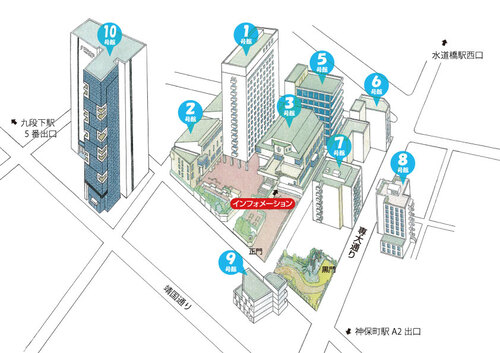 ・神保町駅(地下鉄/都営三田線、都営新宿線、半蔵門線)出口A2より徒歩3分(法科大学院へは徒歩1分)