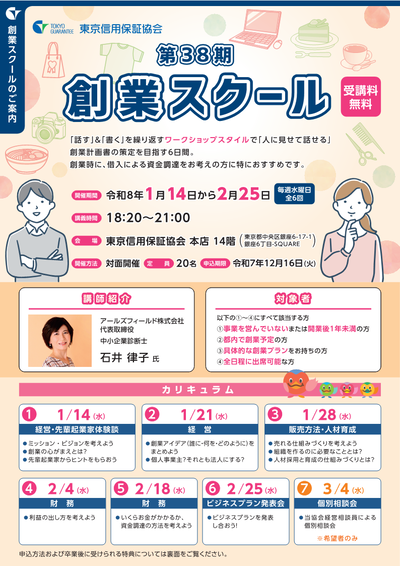参加費無料!東京信用保証協会主催 第38期創業スクールを開催します。